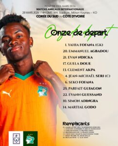 Émerse Faé a dévoilé la liste des 11 entrants pour affronter la Corée du Sud. Voici la liste :