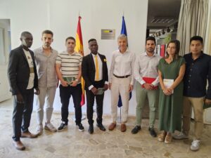 Le top départ de Rayo Vallecano Football Stage et Détection a effectivement démarré le samedi 9 Août 2025 avec l’étape d’Abidjan au Complexe Sportif de Yopougon. Avant de mettre le cap sur Aboisso ce mercredi 13 Août, Docteur Jean Ives Diamana, les trois techniciens de Rayo Vallecano que sont Marcos Pastor Sanchez, Pablo Martin Lopez, Sébastian Romeo Zarabe et Mouhamed N’Diaye de la structure The Opportunity ont été reçu en audience par l’Ambassadeur d’Espagne en Côte d’Ivoire, SEM Guillermo Marin Gorbea.