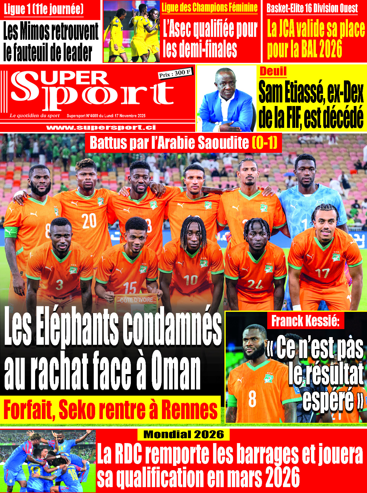 Journal à la UNE Une Supersport N°4088 du Vendredi 14 au Dimanche 16 Novembre 2025 Lire la suite novembre 13, 2025